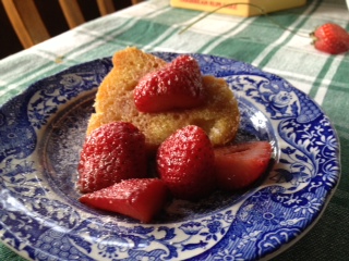 - Top the cake with the strawberries, drizzle a bit of the wine sauce and then sprinkle with a bit of sugar.
