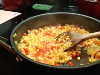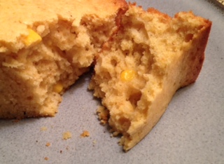 Here’s an easy recipe that delivers a tall bread perfect for dipping or sopping up or just enjoying plain. It’s got that slightly sweet cornbread taste, isn’t gritty, and is delicious hot but also very tasty cold for left overs. The crust is beautifully crisp. It contains corn kernels which adds a nice texture and taste but you could just as easily leave them out or replace with something else-scallions, bacon pieces or anything else that you’d like. See those yummy kernels in there?