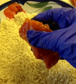 - Gently chop eggs and yolks and put them in a bowl. Add everything else but the 1 strip of bacon, bread and lettuce and stir gently.